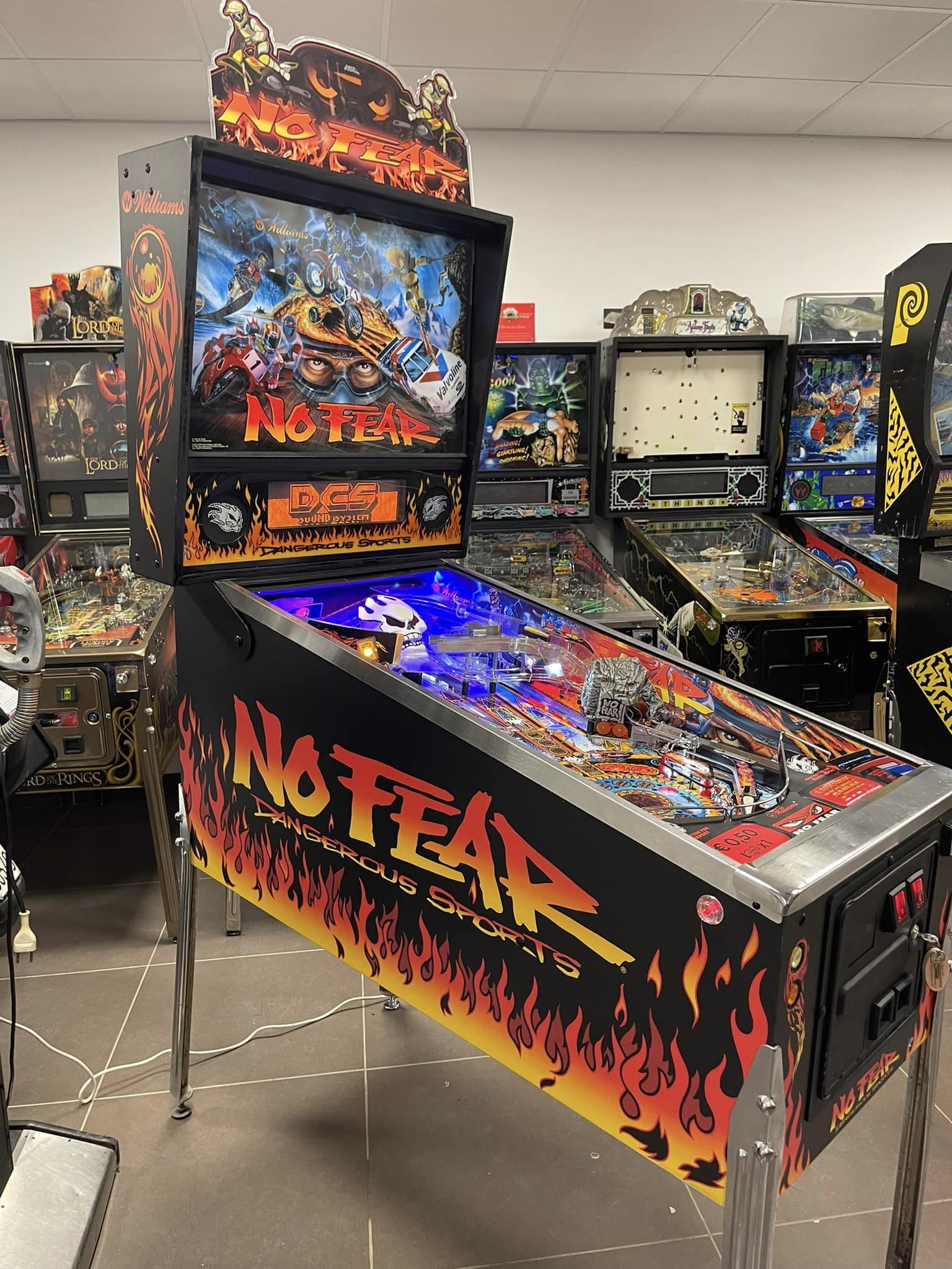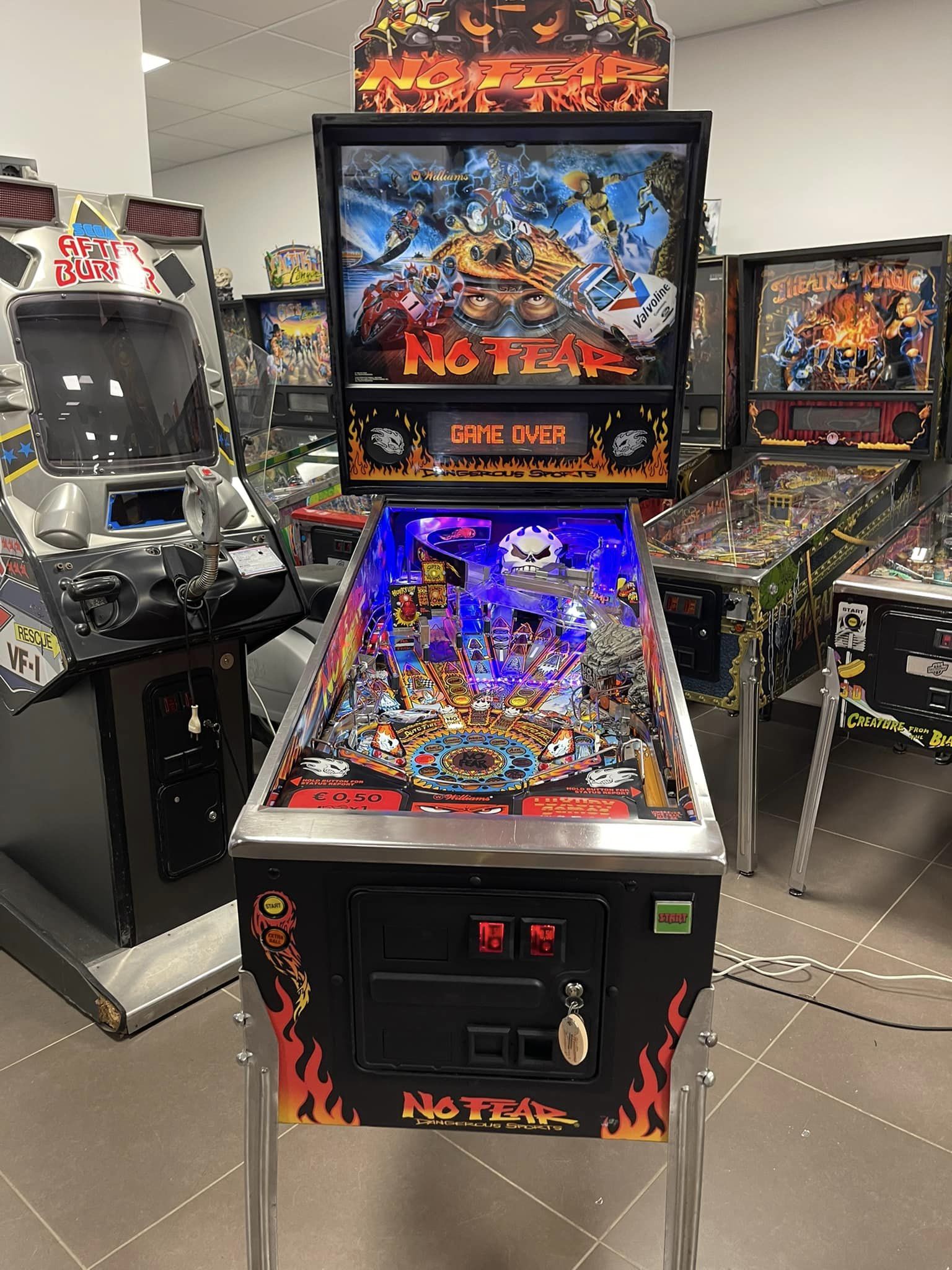No Fear pinball machine with original un-faded cabinet art!